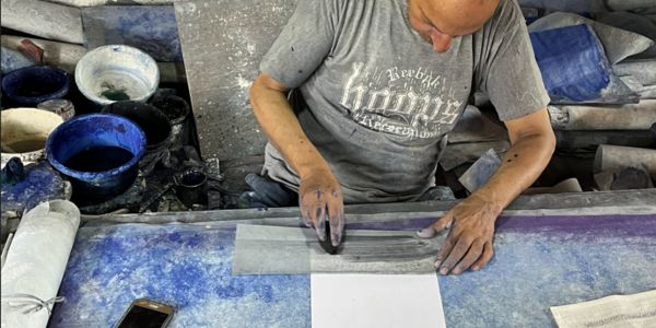 Once the fabric is prepped, the design blueprint is traced onto it and passed on to a group of karigars who bring it to life through hand embroidery. Depending on the chosen technique, the fabric is carefully distributed among artisans who specialize in crewèl, aari, zari, tilla or other traditional forms of embroidery.
