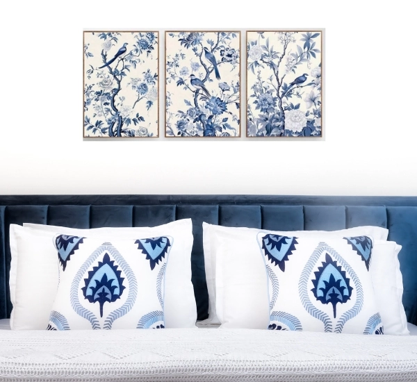 Hamptons Style Multi Embroidered Blue Blossom Cushion Cover