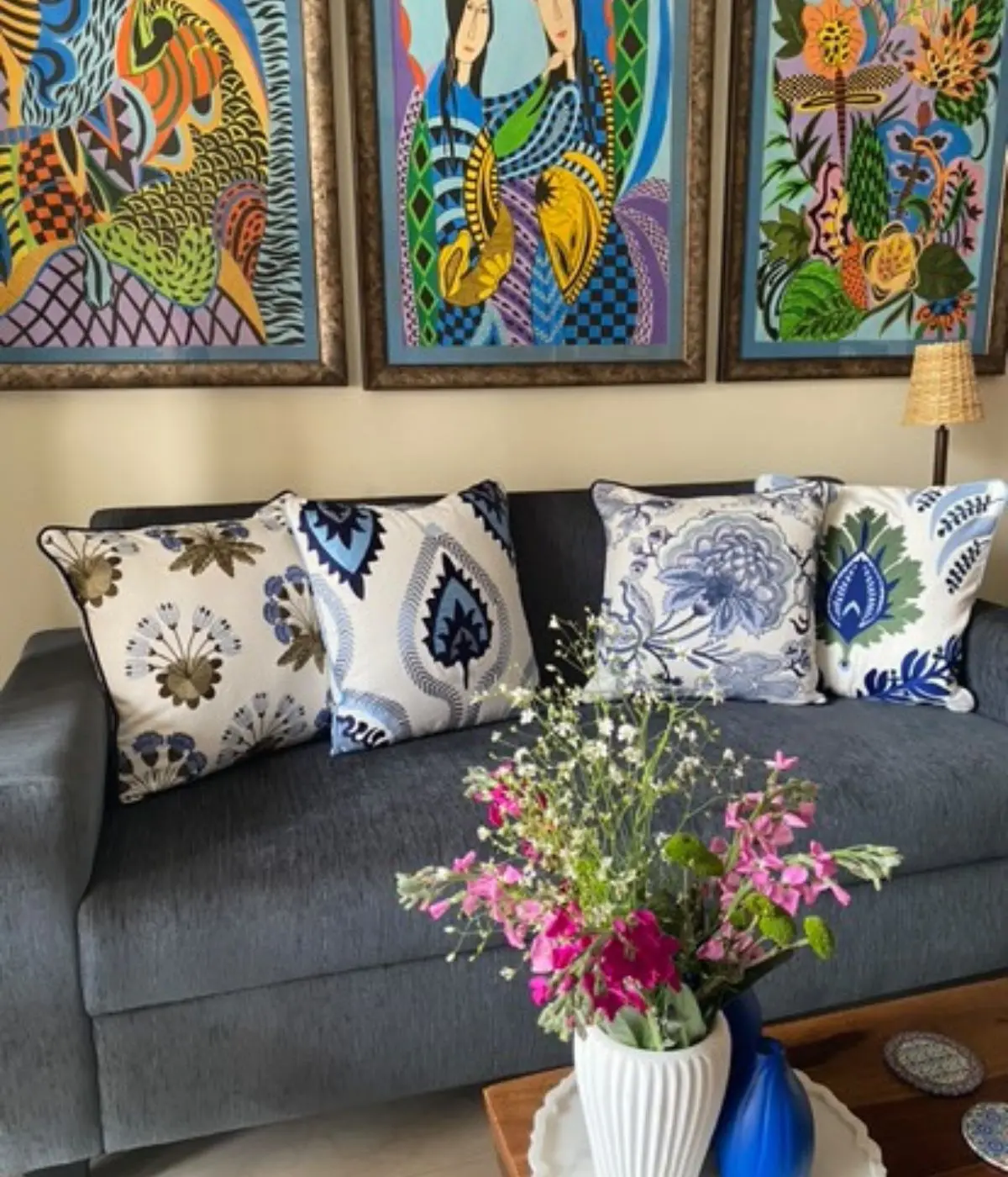 Design Story: Drawing from the untamed beauty of Himalayan forest landscapes, this Hamptons-style cushion cover features richly embroidered bush motifs in striking green and blue tones. It captures the harmony of nature while adding a bold, textural accent to serene, coastal-inspired interiors.